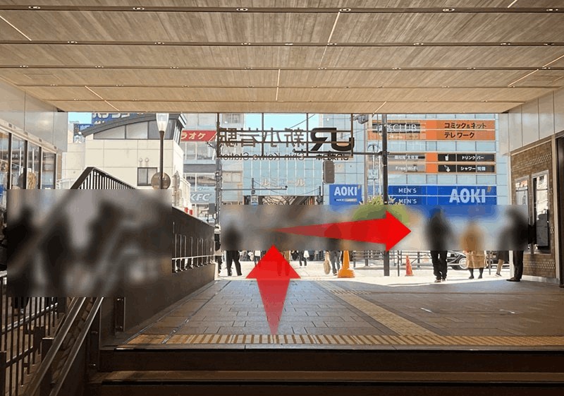 「南口」に向かって直進し、外に出たらすぐ右に進みます。